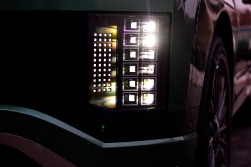 La signature lumineuse à pixels paramétriques, emblématique de la gamme IONIQ, s’intègre harmonieusement dans le design des feux avant et arrière de IONIQ 9. Avec leur esthétique futuriste, les projecteurs et feux arrière à LED pixelisés renforcent non seulement la visibilité, mais affirment également le caractère technologique et distinctif du véhicule. Sur les versions équipées de l’éclairage avant intelligent (IFS), les projecteurs à pixels intègrent des feux de route adaptatifs. Le faisceau lumineux s’ajuste automatiquement au trafic pour une conduite de nuit plus sûre, sans éblouir les autres usagers.