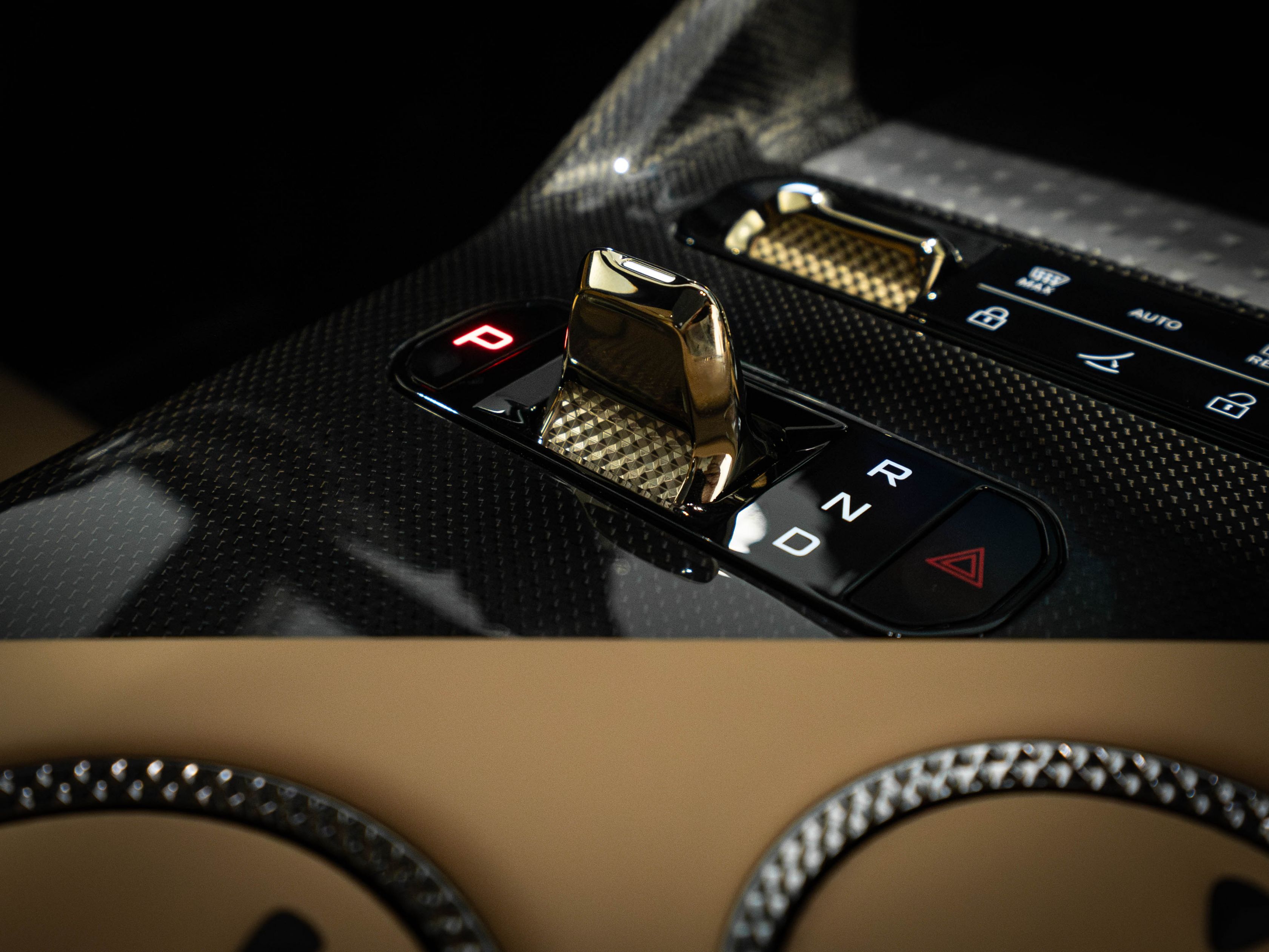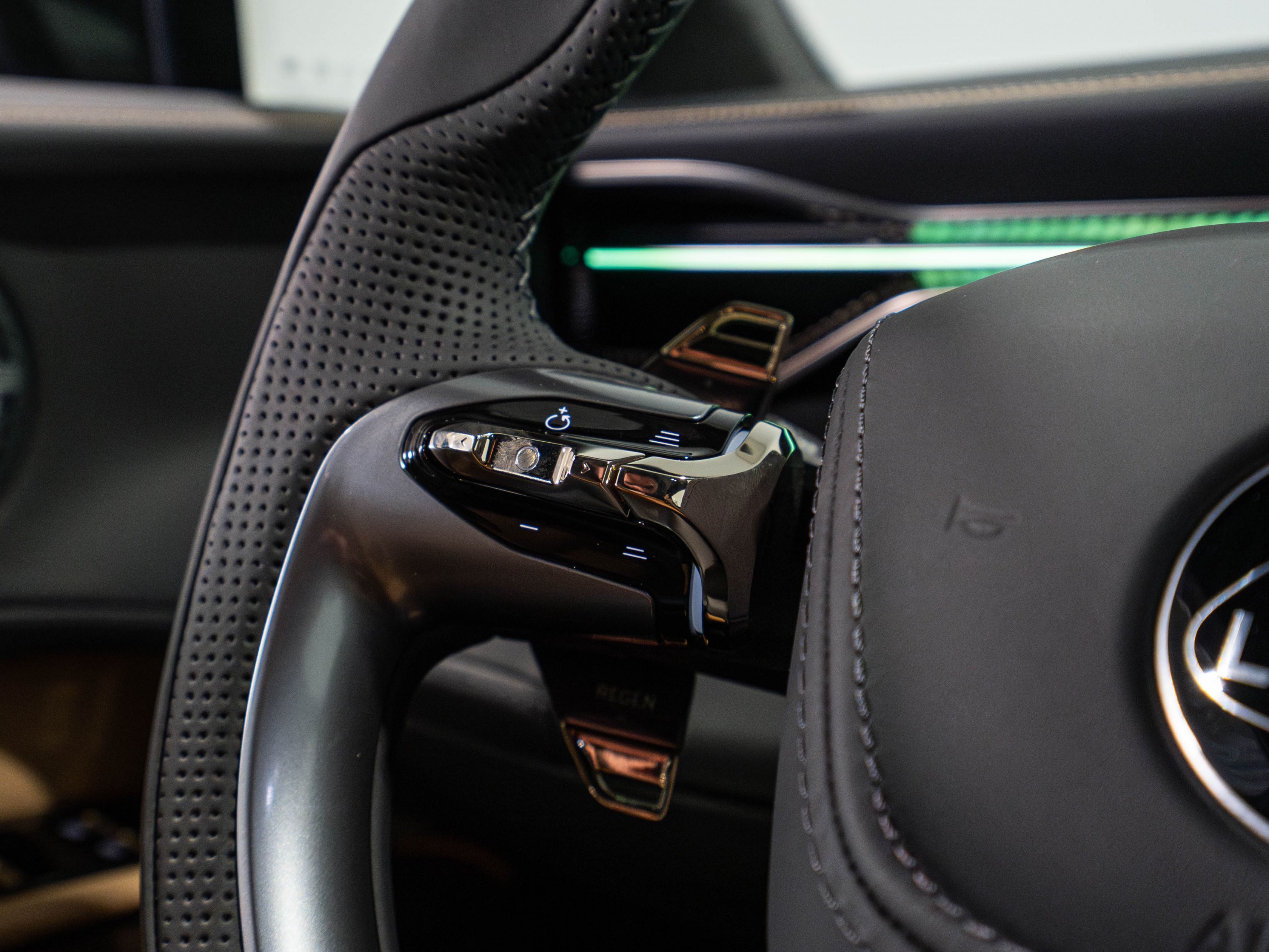 Volant : Cuir gris foncé avec des accents dorés